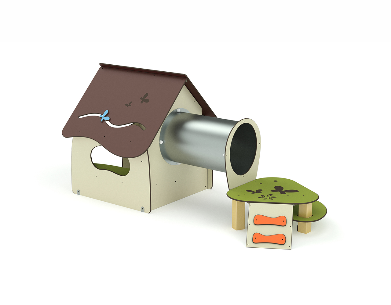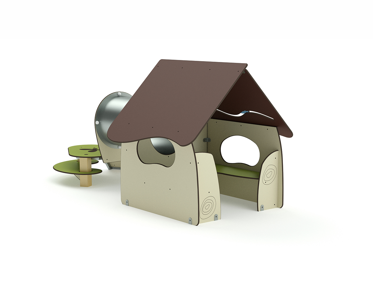 La cabane Alix possède un tunnel inox qui offre de nouvelles perspectives de jeu aux enfants, dès l’âge de 1 an. Reconnaissable entre toutes, son design original permet aux enfants d’exercer leur motricité en traversant le jeu de part en part : une petite plateforme avec marche d’accès, un pan d’escalade incliné, un tunnel.