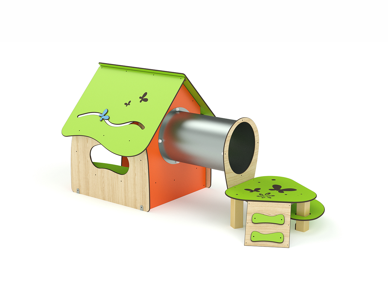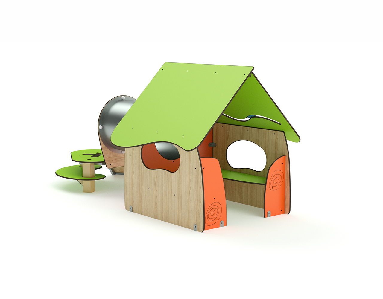 La cabane Alix possède un tunnel inox qui offre de nouvelles perspectives de jeu aux enfants, dès l’âge de 1 an. Reconnaissable entre toutes, son design original permet aux enfants d’exercer leur motricité en traversant le jeu de part en part : une petite plateforme avec marche d’accès, un pan d’escalade incliné, un tunnel.