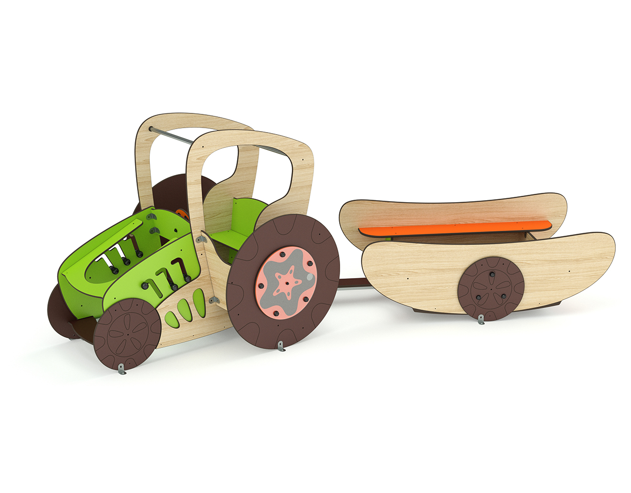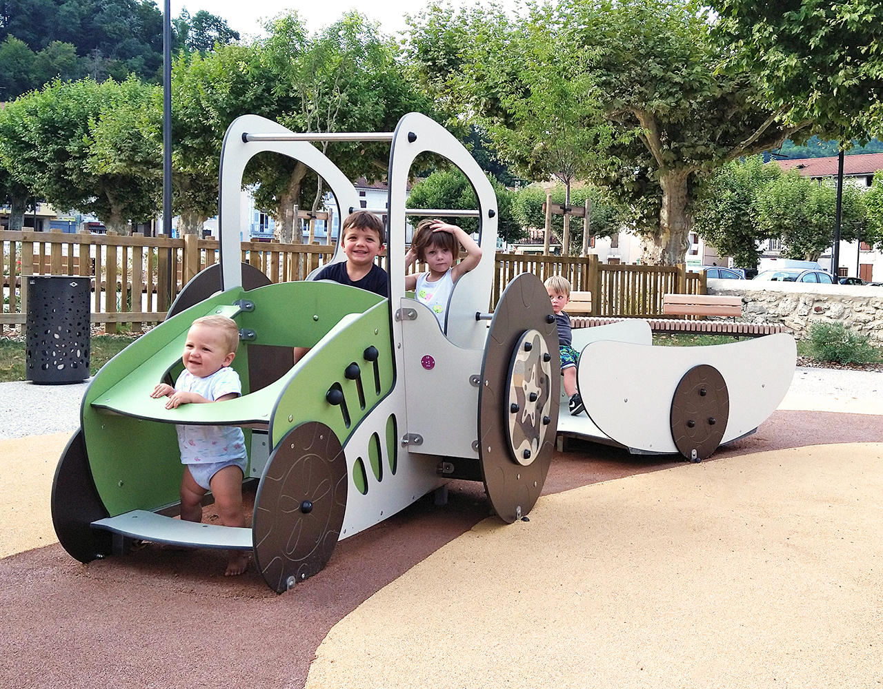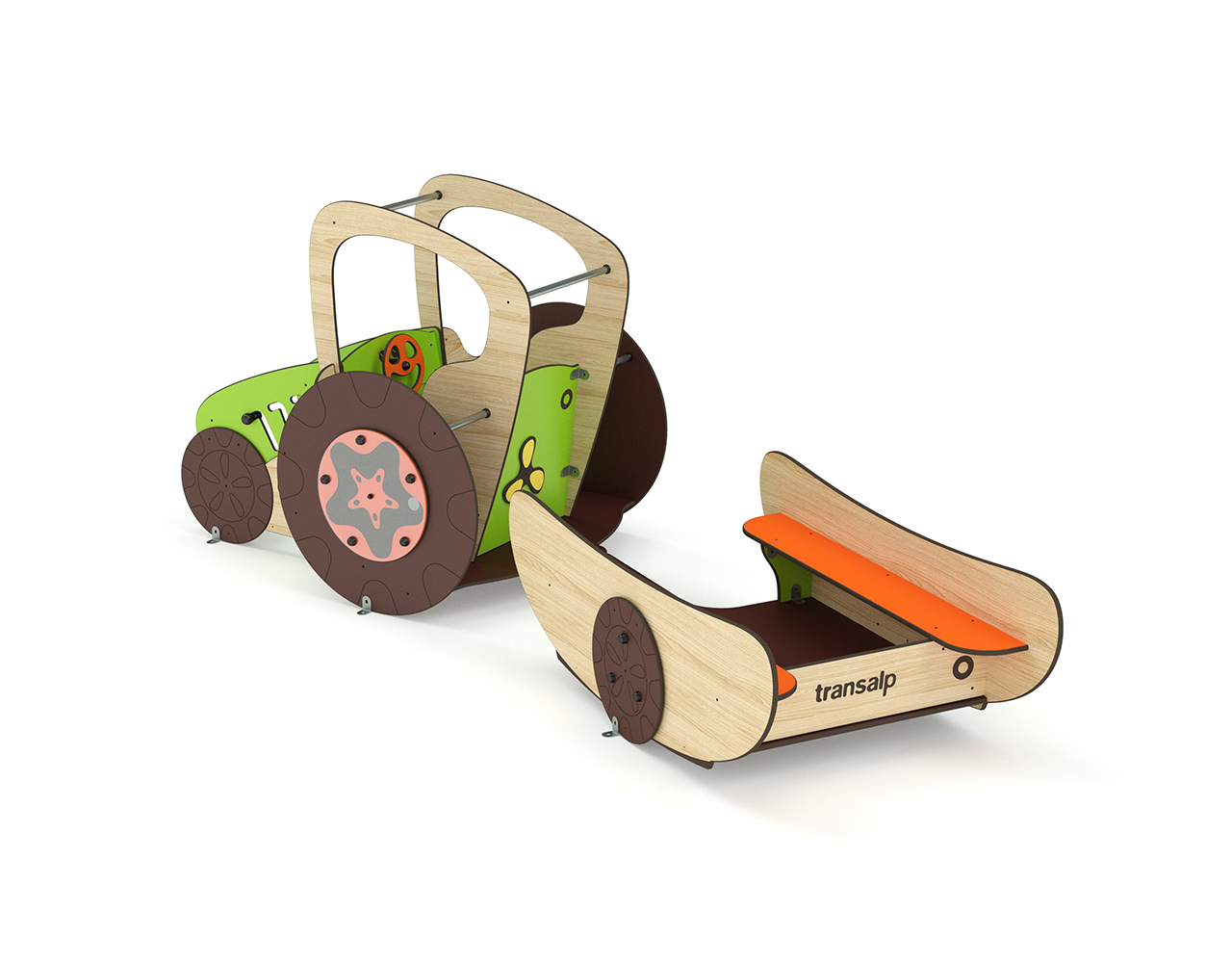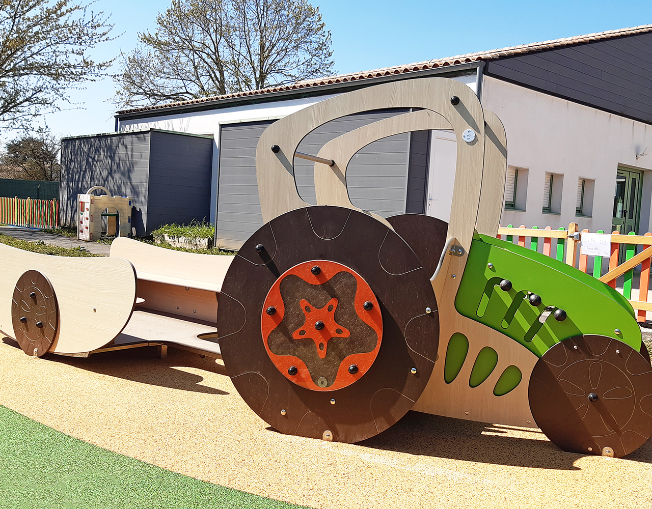 Cette cabane tracteur avec sa cabine, son volant, ses banquettes, ses leviers et sa grande remorque, habillera de son design ludique votre aire de jeux. Accessible dès 1 an, elle peut accueillir 17 enfants à la fois et leur permettra de développer leur imagination et favorisera leur socialisation.