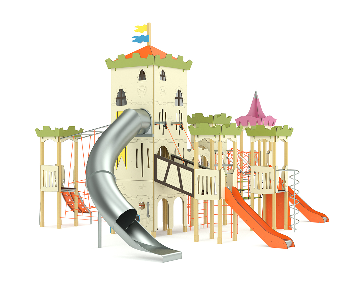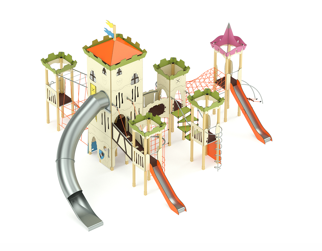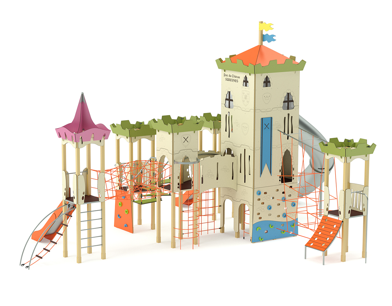 Cette structure monumentale de 6 tours rendra vos aires de jeux spectaculaires. Avec sa multitude d’activités ludiques et son thème médiéval, elle permettre aux enfants de développer leur imagination et leur socialisation. Cette structure sera l’alliée de jeu parfaite pour tous les enfants dès 3 ans.