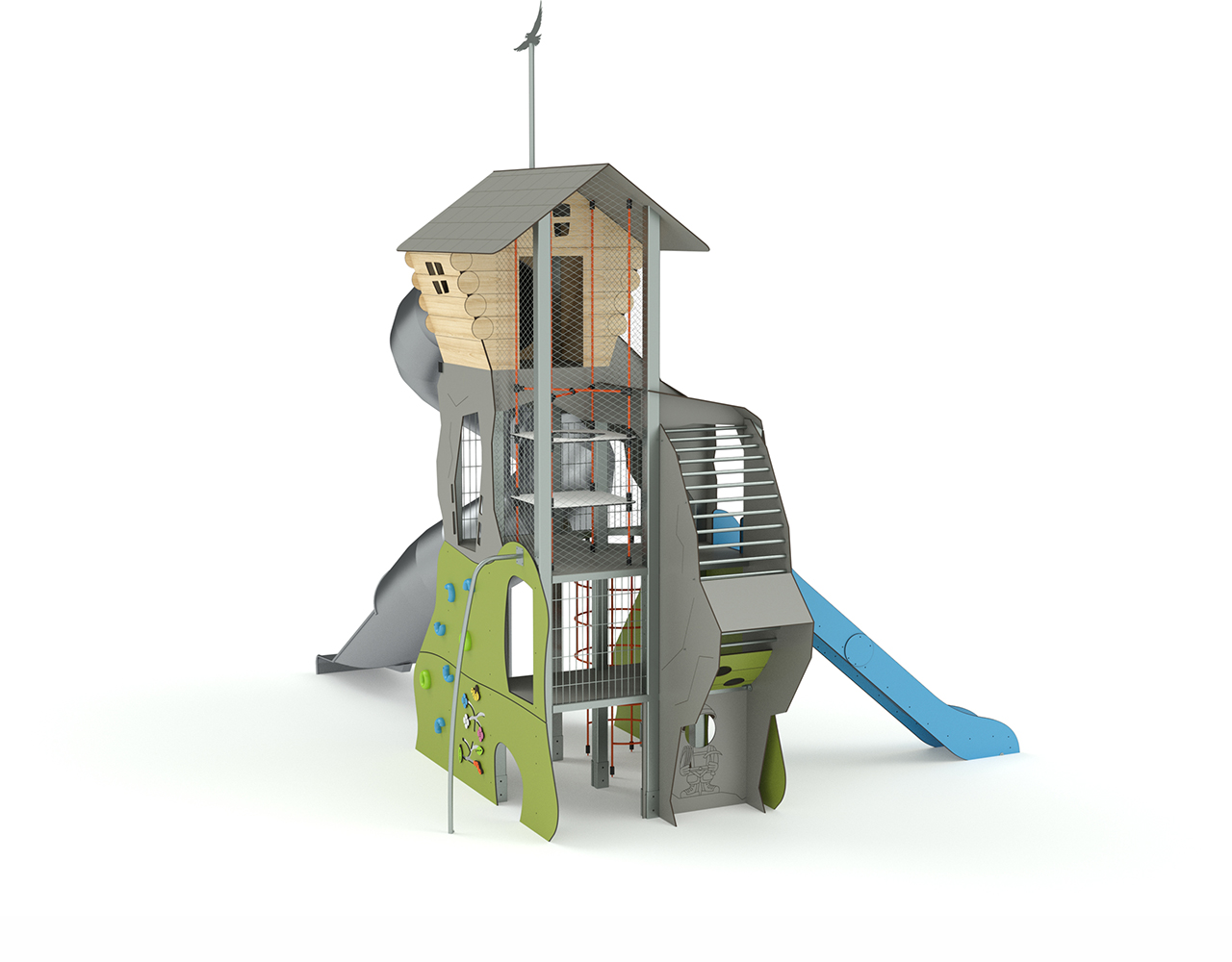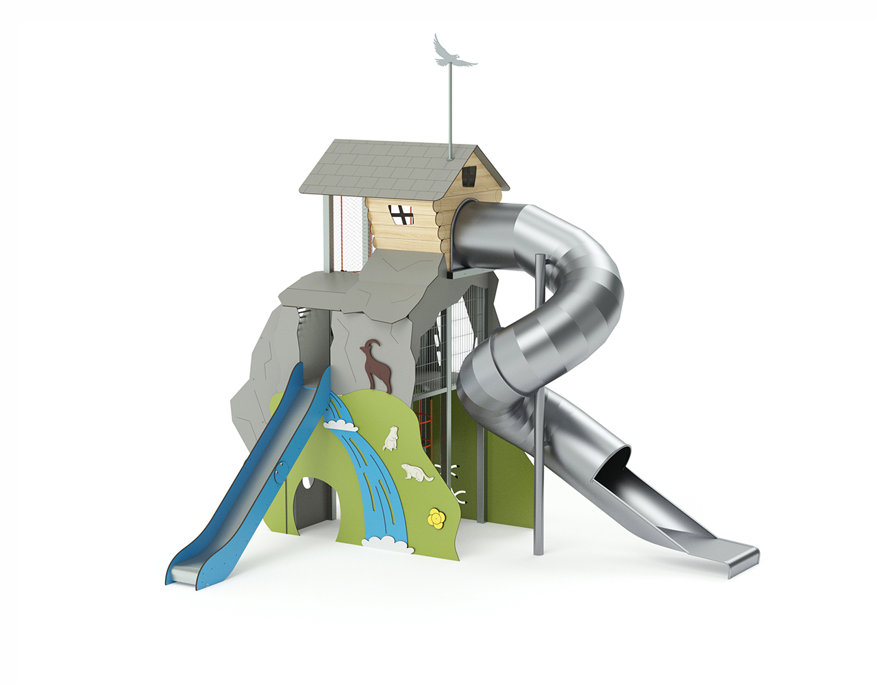 Le Refuge culmine à environ 4,50 m de hauteur et fera de votre aire de jeu sur le thème Montagne, un lieu incontournable pour les enfants. Unique par son design et ses fonctionnalités, Le Refuge peut accueillir une quarantaine d’enfants à la fois, dès l’âge de 2 ans. Et son grand tobo-tube, dont le départ  se situe à 3.15 m de hauteur, ravira les plus téméraires !