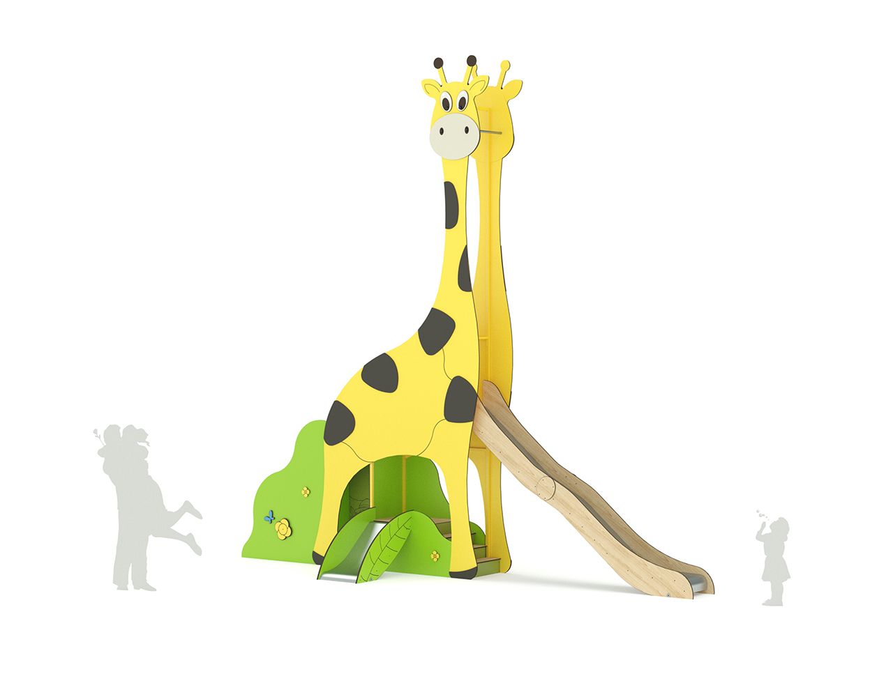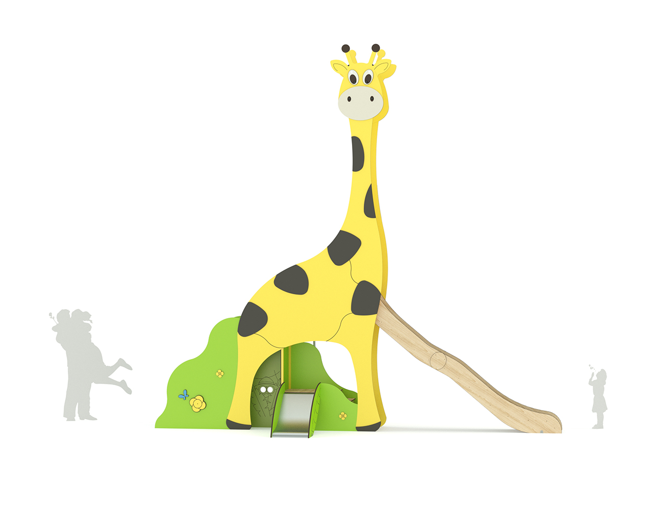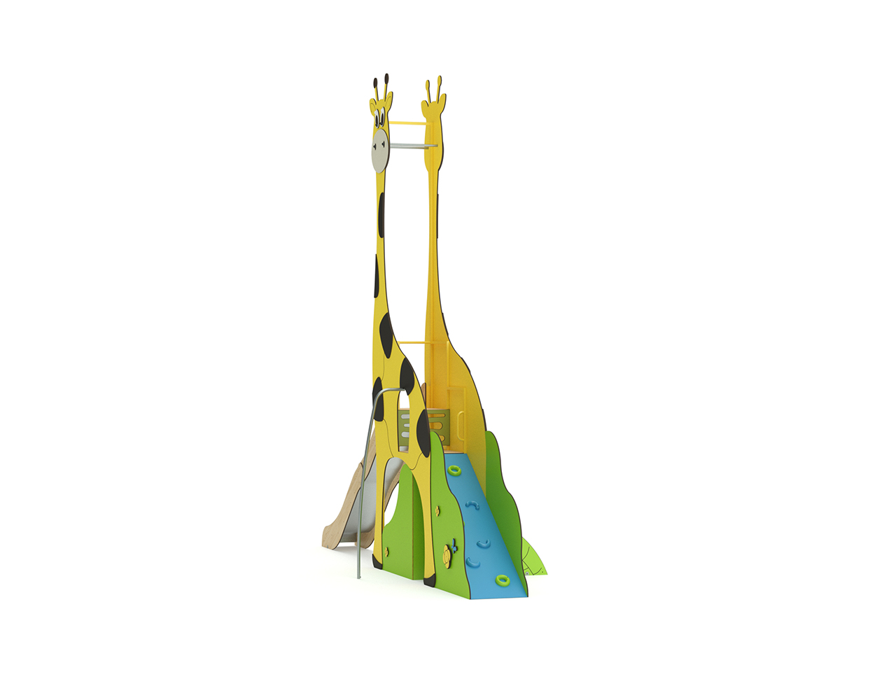 Cette structure Girafe égayera de sa présence votre aire de jeux sur le thème de la nature ou de la savane. Dotée d’un grand toboggan vague accessible par un plan d’escalade incliné, elle fera le bonheur des plus grands aventuriers. Les tout-petits aussi découvriront son petit toboggan H 0.55m et son accès par escalier plein sécurisé. Sa façade ludique, son panneau Explorateur et son mât de pompier complètent l’expérience de jeux. Accessible dès l’âge de 1 an, la Girafe accueillera jusqu’à 11 enfants en même temps.